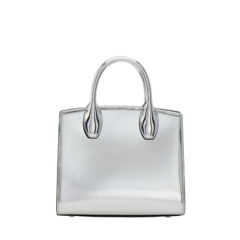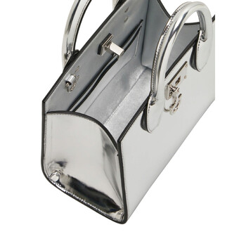 Ferragamo Ladies Tote. SKU: 211424 763291. Material: Calfskin;Lambskin. Color: Silver. Size: W:22cm x H:19cm x D:11cm. Ferragamo Small Studio Box Gancini Buckle Tote Bag. This tote bag is crafted from lambskin and features a Gancini buckle, two rolled top handles, an internal slip pocket, and a removable shoulder strap. Outer: 100% calfskin, Lining: 100% lambskin. Made in Italy.