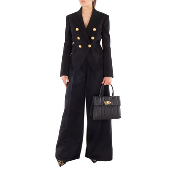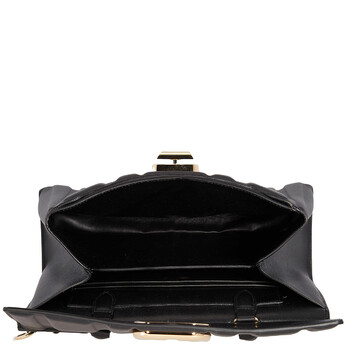 Ferragamo Ladies Top Handle Bag. SKU: 8056283202084. Color: Black. Size: H: 8.6" x W: 11.6" x D: 4.3". Ferragamo The New Gancini Top Handle Bag. The Gancini bag, crafted from quilted calfskin leather, features a top handle, a detachable shoulder strap, Gancini flip-lock closures, and a well-organized interior with two internal pockets and a flat pocket. 100% Leather. Made in Italy.