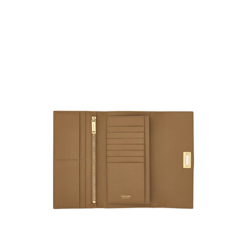 Ferragamo Ladies Wallets. SKU: 220433 763029. Color: Beige/White. Size: 3. 9"x7. 4"x1. 1". Ferragamo Wanda Continental Wallet. Inside there are slots for cards and a zip pocket for coins, featuring a golden Gancio clasp. 100% Calfskin. Made in italy.