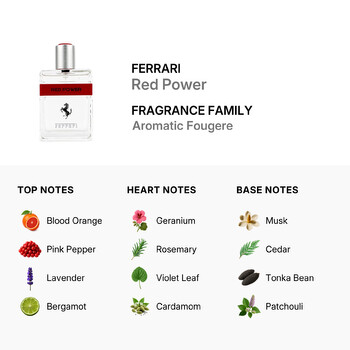 Part of the Aromatic Fougere fragrance family, Ferrari Red Power opens with a dynamic blend of blood orange, pink pepper, lavender, and bergamot. These fresh and spicy top notes create an invigorating start that instantly grabs attention. As the scent unfolds, heart notes of rosemary, geranium, violet leaf, and cardamom bring warmth and depth, adding a layer of elegance and complexity.