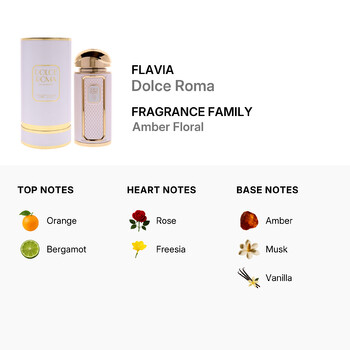 Discover the elegance and charm of Flavia Dolce Roma Eau de Parfum Spray for Ladies, a captivating fragrance that captures the essence of timeless beauty. This luxurious amber floral scent comes in a generous 3.4 oz bottle, offering long-lasting allure with every spritz.