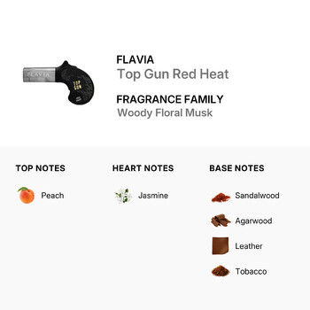 Flavia Men's Top Gun Red Heat belongs to the Woody Floral Musk fragrance family, making it an ideal choice for those who appreciate a harmonious blend of floral and woody notes. The expertly crafted scent is housed in a sleek and stylish bottle, reflecting the high-quality design synonymous with the Flavia brand.