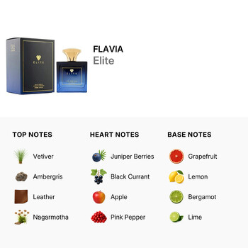 The base notes of grapefruit, lemon, bergamot, lime, and thyme deliver a crisp and invigorating finish, making this Eau de Parfum both dynamic and long-lasting. The result is a fragrance that feels luxurious, modern, and effortlessly elegant. Flavia Elite is more than just a perfume—it's a signature scent that adapts to both day and night, making it the perfect addition to any fragrance collection.