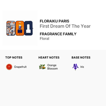 The "First Dream Of The Year" fragrance unfolds with the refreshing burst of grapefruit as its top note, creating an invigorating first impression. As the scent develops, the heart reveals the delicate and enchanting aroma of orange blossom, adding a layer of sophistication and warmth. Finally, the base note of iris leaves a lingering, powdery finish that is both soothing and memorable.