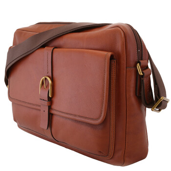 Fossil Men's Messenger. Camden series. SKU: MBG9602210. Color: Brown. Size: 39.4 cm L x 6.4 cm W x 26.7 cm H. Fossil Brown Leather Camden Messenger Bag. This messenger bag features three gusseted pockets, a back slide pocket with a hidden magnetic snap, a front flap pocket with a magnetic snap, and an adjustable, detachable shoulder strap. 100% Leather.