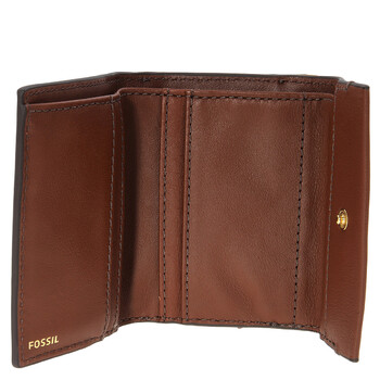 Fossil Ladies Wallets. SKU: SL8288200. Color: Brown. Size: 10.2 cm L x 3.2 cm W x 8.9 cm H. Fossil Penrose Trifold Leather Wallet. This leather trifold includes a bill compartment, four credit card slots, and a back pocket with a flip-lock closure. 100% Leather.