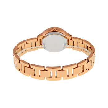 Rose gold-tone stainless steel case with a rose gold-tone stainless steel bracelet with crystal-set bars. Fixed rose gold-tone bezel set with crystals. Silver dial with gold-tone hands and crysta-set index hour markers. Roman numerals mark the 3, 6, 9 and 12 o'clock positions. Dial Type: Analog. Quartz movement. Scratch resistant mineral crystal. Pull / push crown. Solid case back. Round case shape, case size: 30 mm, case thickness: 9 mm. Band width: 14 mm. Adjust-o-matic clasp. Water resistant at 50 meters / 165 feet. Functions: hour, minute, second. Additional Info: djust-o-matic closure allows you to self-adjust the size of virginia's strap or bracelet. Virginia Series. Casual watch style. Fossil Virginia Silver Dial Rose Gold-tone Ladies Watch ES3284.