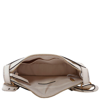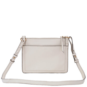 Fossil Ladies Crossbody. SKU: ZB1894105. Color: White. Size: 24.1 cm L x 5.7 cm W x 18.4 cm H. Fossil White Taryn Leather Crossbody Bag. The Taryn bag features a zip closure, gold-tone hardware, an adjustable crossbody strap and a slim design with convenient front and back slide pockets. Material: Leather.