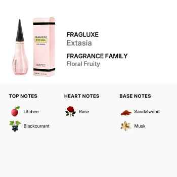 Experience the enchanting allure of Fragluxe's Extasia, a captivating fragrance designed exclusively for ladies. Extasia belongs to the Floral Fruity fragrance family, making it perfect for those who love a blend of sweet and floral scents.