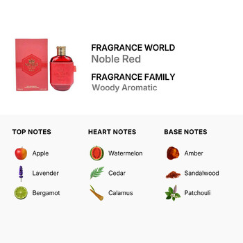 Introducing Noble Red by Fragrance World, a captivating men's fragrance launched in 2024. Crafted for the modern gentleman, this 3.4 oz EDP Spray embodies the essence of sophistication and elegance. Hailing from the renowned design house of Fragrance World, based in the United Arab Emirates, Noble Red is a testament to exquisite Middle Eastern craftsmanship.