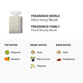 Experience the soft elegance of Intro Ivory Musk by Fragrance World, a captivating unisex fragrance crafted in the heart of the United Arab Emirates. Inspired by the rich traditions of Middle Eastern perfumery, this scent blends timeless charm with modern sophistication, making it the perfect addition to any fragrance collection.
