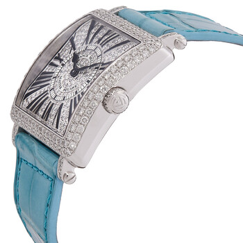 18kt white gold case with a leather strap. Fixed diamond set 18kt white gold bezel. Diamond set dial with black hands and Roman numeral hour markers. Minute scale around the inner rim. Dial Type: Analog. Quartz movement. Scratch resistant sapphire crystal. Pull / push crown. Solid case back. Square case shape, case size: 29 mm. Buckle clasp. Water resistant at 30 meters / 100 feet. Functions: hour, minute. Master Square Color Dreams Series. Luxury watch style. Watch label: Swiss Made. Franck Muller Master Square Color Dreams Quartz Diamond Watch 6002 L QZ D CD OG.