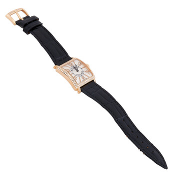 18kt rose gold case with a black leather strap. Fixed 18kt rose gold bezel set with diamonds. Rose gold-tone hands and index-Arabic numeral hour markers. Minute scale around the inner rim. Dial Type: Analog. Quartz movement. Scratch resistant sapphire crystal. Pull / push crown. Solid case back. Square case shape, case size: 29 mm. Buckle clasp. Water resistant at 30 meters / 100 feet. Functions: hour, minute. Master Square Series. Luxury watch style. Watch label: Swiss Made. Item Variations: 6002 S QZ 6/6 D REL. Franck Muller Master Square Quartz Diamond Ladies Watch 6002 S QZ 6/6 D REL.