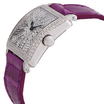 18kt white gold case with a leather strap. Fixed bezel with 18kt white gold diamond set. Diamond set dial with black hands and Roman numeral hour markers. Minute scale around the inner ring. Dial Type: Analog. Quartz movement. Scratch resistant sapphire crystal. Solid case back. Square case shape, case size: 29 mm. Buckle clasp. Water resistant at 30 meters / 100 feet. Functions: hour, minute. Master Square Relief Series. Luxury watch style. Watch label: Swiss Made. Franck Muller Master Square Relief Quartz Diamond Ladies Watch 6002 S QZ R D CD OG.