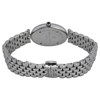 Silver-tone stainless steel case with a silver-tone stainless steel bracelet. Fixed silver-tone stainless steel bezel. Mother of pearl dial with black Breguet-style shape hands and Roman numeral hour markers. Minute markers aroundan inner ring. Dial Type: Analog. Frederique Constant Calibre FC-200 quartz movement. Scratch resistant sapphire crystal. Pull / push crown. Solid case back. Oval case shape, case size: 30 mm x 24.5 mm, case thickness: 8 mm. Band width: 14 mm, band length: 7 inches. Tang clasp. Water resistant at 30 meters / 100 feet. Functions: hour, minute. Dress watch style. Watch label: Swiss Made. Item Variations: FC 200MPW2VD6B, FC.200MPW2VD6B, FC200MPW2VD6B. Frederique Constant Art Deco Mother Of Pearl Dial Ladies Watch FC-200MPW2VD6B.