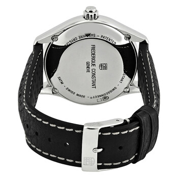 Stainless steel case with a black leather strap. Fixed stainless steel bezel. Black dial with silver-tone dauphine-style hands and index hour markers. Minute markers. Pulsations markings. Telemeter markings around the outer rim. Dial Type: Analog. Luminescent hands. Frederique Constant calibre MMT-282 quartz movement. Scratch resistant sapphire crystal. Solid case back. Round case shape. Case size: 42 mm. Tang clasp. Water resistant at 50 meters / 165 feet. Functions: hour, minute, activity tracker, sleep control device, sleep cycle alarm, alerts. Horological Smartwatch Series. Smart watch style. Watch label: Swiss Made. Frederique Constant Black Dial Men's Horological SmartWatch FC-282ABS5B6.