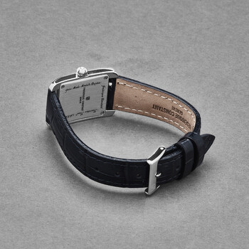 Stainless steel case with a blue leather strap. Fixed stainless steel bezel set with diamonds. Mother of pearl dial with black hands and Roman numeral hour markers. Minute markers around an inner ring. Dial Type: Analog. Frederique Constant calibre FC-200 quartz movement. Scratch resistant sapphire crystal. Pull / push crown. Solid case back. Rectangle case shape. Case size: 21 mm. Case thickness: 6.5 mm. Band width: 15 mm. Tang clasp. Water resistant at 30 meters / 100 feet. Functions: hour, minute. Carree Series. Dress watch style. Watch label: Swiss Made. Frederique Constant Carree Quartz Diamond Mother of Pearl Dial Ladies Watch FC-200MPWCD16.
