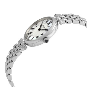 Stainless steel case with a stainless steel bracelet. Fixed stainless steel bezel. Mother of pearl dial with black hands and Roman numeral hour markers. Dial Type: Analog. Frederique Constant calibre FC-200 quartz movement. Scratch resistant sapphire crystal. Pull / push crown. Solid case back. Round case shape. Case size: 30 mm. Case thickness: 8 mm. Band width: 14 mm. Fold over clasp. Water resistant at 30 meters / 100 feet. Functions: hour, minute. Classics Art Deco Series. Casual watch style. Watch label: Swiss Made. Frederique Constant Classics Art Deco Quartz Ladies Watch FC-200MPW2AR6B.