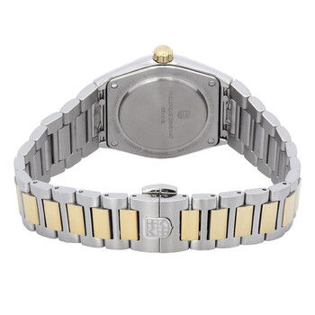 Silver-tone stainless steel case with a two-tone (silver-tone and gold-tone) stainless steel bracelet. Fixed gold-tone stainless steel bezel. Silver dial with gold-tone hands and index-diamond numeral hour markers. Dial Type: Analog. Luminescent hands. Date display at the 3 o'clock position. Frederique Constant Calibre FC-240. quartz movement. Scratch resistant sapphire crystal. Pull / push crown. Solid case back. Round case shape, case size: 31 mm. Deployment with push button release clasp. Water resistant at 50 meters / 165 feet. Functions: date, hour, minute, second. Highlife Series. Dress watch style. Watch label: Japan Movt. Frederique Constant Highlife Quartz Diamond Silver Dial Ladies Watch FC-240VD2NH3B.