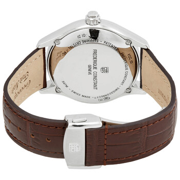 Stainless steel case with a dark brown leather strap. Fixed stainless steel bezel. Black dial with luminous silver-tone hands and Arabic numeral hour markers. Minute markers around the outer rim. Dial Type: Analog. Luminescent hands and markers. Date display at the 6 o'clock position. Dual sub-dial displaying: 1/100th second and date. Frederique Constant calibre MMT-285 quartz movement. Scratch resistant sapphire crystal. Push button crown. Solid case back. Round case shape. Case size: 42 mm. Case thickness: 13.35 mm. Band width: 21 mm. Fold over clasp with a push button release. Water resistant at 50 meters / 165 feet. Functions: date, hour, minute, second. Smart watch style. Watch label: Swiss Made. Frederique Constant Horological Quartz Dark Brown Leather Men's Smart Watch FC-285BBR5B6BR.