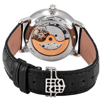 Stainless steel case with a black (alligator) leather strap. Fixed stainless steel bezel. Silver dial with black leaf-style hands and Roman numeral hour markers. Dial Type: Analog. Date sub-dial. power reserve indicator. Frederique Constant calibre FC-723 automatic movement, containing 28 Jewels, bitting at 28800 vph, and has a power reserve of approximately 50 hours. Scratch resistant sapphire crystal. Pull / push crown. Transparent case back. Round case shape. Case size: 40 mm. Case thickness: 11.4 mm. Band width: 20 mm. Fold over clasp. Water resistant at 30 meters / 100 feet. Functions: date, hour, minute, second, power reserve. Slim Line Series. Luxury watch style. Watch label: Swiss Made. Frederique Constant Slim Line Automatic Silver Dial Men's Watch FC-723WR3S6.