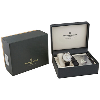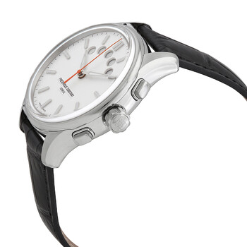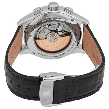 Silver-tone stainless steel case with a black alligator leather strap. Fixed silver-tone stainless steel bezel. Silver dial with silver-tone hands and index hour markers. Minute markers around the outer rim. Dial Type: Analog. Luminescent hands and markers. Frederique Constant Calibre FC-380 automatic movement. Scratch resistant sapphire crystal. Screw down crown. Transparent case back. Round case shape, case size: 42 mm. Water resistant at 100 meters / 330 feet. Functions: hour, minute, second. Yacht Timer Regatta Countdown Series. Casual watch style. Watch label: Swiss Made. Frederique Constant Yacht Timer Regatta Countdown Automatic Silver Dial Men's Watch FC-380ST4H6-CL.