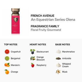 Step into a world of elegance and adventure with French Avenue’s An Equestrian Series Olena for Ladies. Released in 2025, this luxurious Eau de Parfum Spray blends floral, fruity, and gourmand notes for a fragrance that feels both graceful and bold. Crafted by the renowned Middle Eastern design house French Avenue, based in the United Arab Emirates, this captivating scent is the perfect match for women with a free spirit and refined taste.