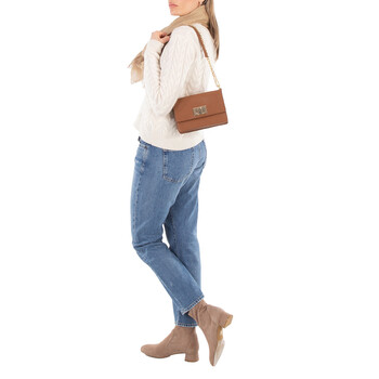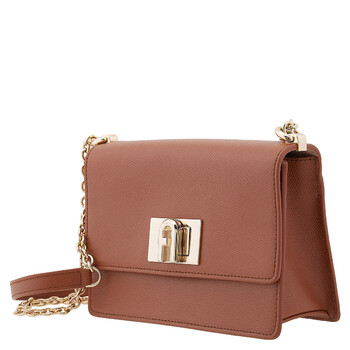Furla Ladies Crossbody. SKU: BAFKACOARE00003B001007. Color: Cognac. The Furla Mini Crossbody Bag is a sophisticated accessory crafted from natural grained leather, ensuring a luxurious texture and lasting durability. Designed with a structured, hard silhouette, this small-sized bag (20 x 13 x 7.5 cm) offers elegance and practicality, perfect for carrying essentials. Featuring a twist-lock closure with a flap, the design ensures secure yet easy access to your belongings. The interior includes a single compartment with a dedicated mobile phone pocket for effortless organization.