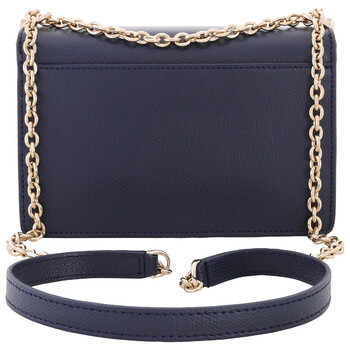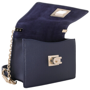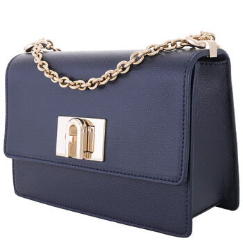 Furla Ladies Crossbody. SKU: BAFKACOARE0002676S1007. Color: Blue. Size: W: 7.8" x H: 5.3" x D: 2.7". Furla 1927 Mini Crossbody Bag. The Furla 1927 mini bag features a gold-tone hardware, chain shoulder strap with adjustable matching leather sections, twist closure with Arch logo, back slip pocket, and a main compartment. 100% Leather.