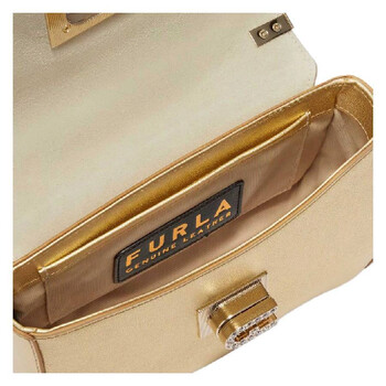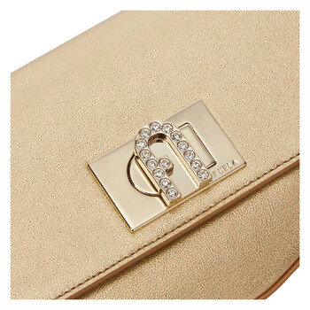 Furla Ladies Mini Bag. SKU: WB01155BX2658CGD009080. Material: Leather;Polyester. Closure Type: Twist & Lock. Color: Yellow. Size: W: 21.5cm x L: 7.5cm x H: 13cm. Furla 1927 Mini Wave Leather Crossbody Bag. This elegant mini bag features a sinuous wave design with a simple construction and a sliding chain shoulder strap for versatile styling. Despite its compact size, it offers a roomy interior with an internal open pocket and an external open pocket on the back. The bag is secured with a twist closure adorned with rhinestones and finished with gold galvanic accents. Carry by hand, it can transforms into a sophisticated clutch. 100% Leather, 100% Polyester.