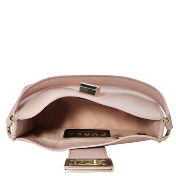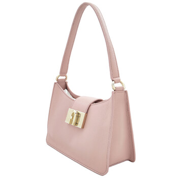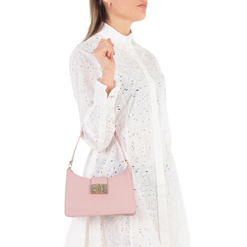 Furla Ladies Shoulder Bag. SKU: WB01114HSF000ALB001007. Color: Pink. Size: W: 8.6" x H: 5.9" x D: 3.5". Furla 1927 S Leather Shoulder Bag. This shoulder bag is made of calf leather with a pebbled texture, featuring a logo plaque, foldover flap, single shoulder strap, and a main compartment with an internal patch pocket, zip-fastening pocket, and logo tag, all lined with full fabric and finished with gold-tone hardware and a twist-lock fastening. 100% Lether.
