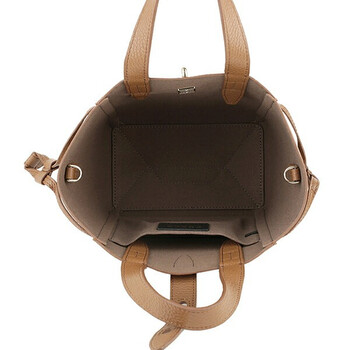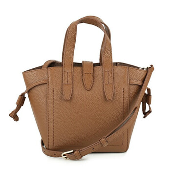 Furla Ladies Tote. SKU: BASRFUAHSF00003B001007. Barcode: 8050597044194. Color: Cognac. Furla Ladies Cognac Mini Leather Tote. Crafted from textured leather, this trapeze-shaped bag features adjustable drawstrings on the sides to modify its silhouette. It is finished with gold accents and an embossed logo on the front. The bag fastens with a strap and a metal twist closure, and the spacious main compartment includes one slip pocket.