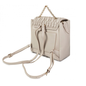 Furla Ladies Backpack. SKU: BPICBYO72Q000ZGDJ. Barcode: 8050560409371. Color: Perla E. Size: 25 cm x 23 cm x 10 cm. Furla Ladies Pin Cometa S Leather Backpack In Perla E. Crafted from leather, this backpack features 1 main internal compartment, 1 wall zip pocket, a gold-toned metal hardware, chain top handle, adjustable shoulder straps and 1 rear patch pocket.