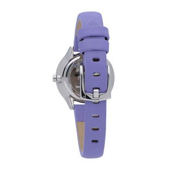 Stainless steel case with a lilac leather strap. Fixed stainless steel bezel. Lillac dial with silver-tone hands and index hour markers. Dial Type: Analog. Quartz movement. Scratch resistant mineral crystal. Push/pull crown. Solid case back. Round case shape. Case size: 31 mm. Case thickness: 8.0 mm. Band width: 13 mm. B and length: 7.5 inches. Tang clasp. Water resistant at 30 meters / 100 feet. Functions: hour, minute. Metropolis Series. Casual watch style. Watch label: Japan Movt. Furla Metropolis Lillac Dial Ladies Watch R4251102506.