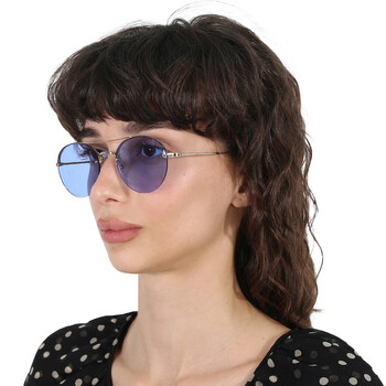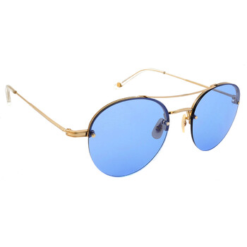 Garrett Leight Sunglasses. Series Beaumont. Series number: 4041. Color code: G-CR/BM. Shape: Round. Lens Width: 53 mm. Lens Bridge: 20 mm. Arm Length: 145 mm. 100% UV protection. Frame Material: Metal. Frame Color: Gold;Crystal. Lenses Type: Blue Magic. Rim Style: Semi-Rimless. UPC/EAN code: 9053810012384. Garrett Leight Beaumont Blue Magic Round Ladies Sunglasses 4041 G-CR/BM 53.