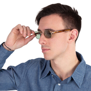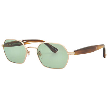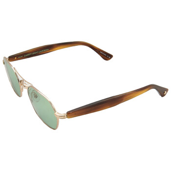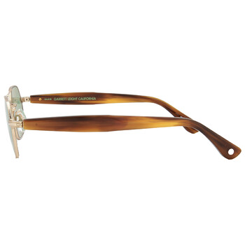 Garrett Leight Sunglasses. Series GOLDIE SUN. Series number: 4064. Color code: G-BIO BTO/PALM. Shape: Geometric. Lens Width: 50 mm. Lens Bridge: 21 mm. Arm Length: 145 mm. 100% UV protection. Frame Material: Metal. Frame Color: Gold-Bio Blonde Tortoise. Lenses Type: Palm. Rim Style: Full-Rim. Garrett Leight GOLDIE SUN Palm Geometric Unisex Sunglasses 4064 G-BIO BTO/PALM 50.