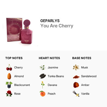 Experience a burst of youthful charm and irresistible confidence with Geparlys You Are Cherry Eau de Parfum Spray for Ladies. Crafted in the heart of France, this enchanting fragrance is a delightful blend of fruity sweetness and feminine elegance. Designed by the prestigious house of Geparlys, "You Are Cherry" brings a playful yet sophisticated vibe to your everyday scent collection.