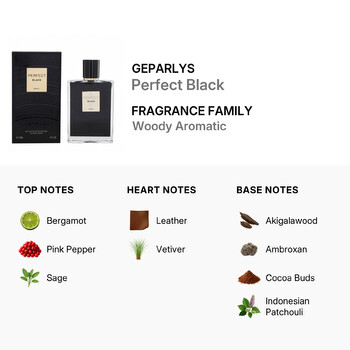 Perfect Black belongs to the Woody Aromatic family, making it a distinctive choice for those who appreciate bold and earthy fragrances. The top notes of Bergamot, Pink Pepper, and Sage create an invigorating opening, setting the stage for a memorable sensory experience. As the fragrance develops, heart notes of Leather and Vetiver provide a rich, masculine depth that is both captivating and enduring.