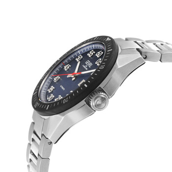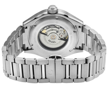 Silver-tone stainless steel case and bracelet. Fixed black stainless steel bezel. Blue dial with silver-tone hands and Arabic numeral hour markers. Minute markers around the outer rim. Dial Type: Analog. Luminescent hands and markers. Date display at the 3 o'clock position. Sellita Caliber SW220 automatic movement. Scratch resistant sapphire crystal. Screw down crown. Transparent see through case back. Round case shape, case size: 43 mm, case thickness: 12 mm. Band width: 18 mm. Deployment with push button release clasp. Water resistant at 100 meters / 330 feet. Functions: date, hour, minute, second. Additional Info: forged carbon bezel. Ascari Series. Luxury watch style. Watch label: Swiss Made. Gevril Ascari Automatic Blue Dial Men's Watch 48301B.