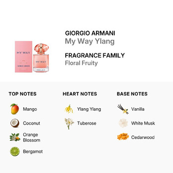 Discover a new chapter of elegance with Giorgio Armani My Way Ylang Eau de Parfum Spray. Crafted for the modern woman, this captivating fragrance blends radiant florals with luscious fruits for an unforgettable scent experience. Designed by the renowned Italian fashion house Giorgio Armani, My Way Ylang is a luxurious addition to your fragrance collection.
