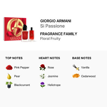 Si Passione by Giorgio Armani opens with a lively burst of pink pepper, crisp pear, and succulent blackcurrant, creating an invigorating and refreshing scent. This splendid combination gracefully transitions into the heart notes of romantic rose, intoxicating jasmine, and delicate heliotrope, adding a layer of floral beauty to the fragrance.