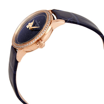 18kt rose gold case with a blue (alligator) leather strap. Fixed 18kt rose gold set with diamonds bezel. Blue aventurine dial with rose gold-tone hands. No markers. Dial Type: Analog. Caliber GP03300-0150 automatic movement with a 46-hour power reserve. Scratch resistant sapphire crystal. Transparent case back. Oval case shape. Case dimensions: 30.4 mm x 35.4 mm. Case thickness: 9.21 mm. Fold over clasp. Water resistant at 30 meters / 100 feet. Functions: hour, minute. Cat's Eye Plum Blossom Series. Luxury watch style. Watch label: Swiss Made. Girard Perregaux Cats Eye Plum Blossom Automatic Diamond Blue Dial Ladies Watch 80484D52A401-CK4E.
