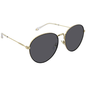 Givenchy Sunglasses. Color code: J5G60IR. Shape: Oval. Lens Width: 60 mm. Lens Bridge: 145 mm. Arm Length: 18 mm. 100% UV protection. Non-Polarized. Frame Material: Metal. Frame Color: Gold. Lenses Type: Grey. UPC/EAN code: 716736024417. Givenchy Grey Oval Ladies Sunglasses GV7089S-J5G60IR-60.
