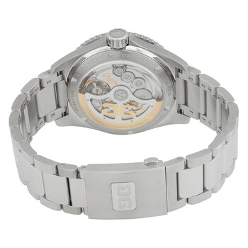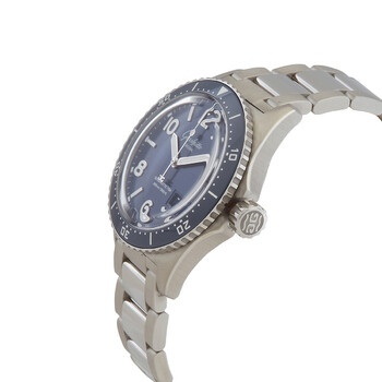 Silver-tone stainless steel case with a brushed & polished stainless steel bracelet. Uni-directional rotating blue bezel. Blue dial with silver-tone hands and Arabic numeral, index hour markers. Minute markers around the outer rim. Dial Type: Analog. Luminescent hands and markers. Date display between 4 and 5 o'clock position. Glashutte Original Calibre 36-13 Automatic movement, containing 41 Jewels, bitting at 28800 vph, and has a power reserve of approximately 100 hours. Scratch resistant sapphire crystal. Screw down crown. Transparent case back. Round case shape, case size: 43.2 mm, case thickness: 15.65 mm. Deployant buckle clasp. Water resistant at 300 meters / 1000 feet. Functions: big date, hour, minute, small second. Seaq Panorama Date Series. Dive watch style. Watch label: Made In Germany. Glashutte Original SeaQ Panorama Date Automatic Blue Dial Men's Watch 1-36-13-02-81-70.