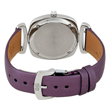 Stainless steel case with a midnight blue satin (alligator leather backed) strap. Fixed stainless steel bezel. Galvanized silver dial with silver-tone hands and diamond hour markers. Dial Type: Analog. Date display at the 6 o'clock position. Glashutte calibre 03-01 quartz movement. Scratch resistant sapphire crystal. Pull / push crown. Solid case back. Cushion case shape. Case dimensions: 31 mm x 31 mm. Case thickness: 7.5 mm. Band width: 16 mm. Band length: 7 inches. Tang clasp. Water resistant at 50 meters / 165 feet. Functions: date, hour, minute. Additional Info: 12 diamonds (approx. 0.06 ct, tw vvs) ). Luxury watch style. Watch label: Made in Germany. Glashutte Pavonina Galvanized Silver Dial Ladies Watch 1-03-01-15-02-34.