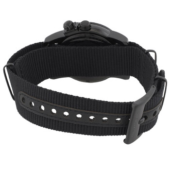 Black stainless steel case with a black nylon strap. Black stainless steel bezel. Black dial with blue hands and Arabic numeral hour markers. Minute markers around the outer rim. Dial Type: Analog. Luminescent hands and markers. Date display at the 3 o'clock position. Ronda Caliber 515.24H quartz movement. Scratch resistant sapphire crystal. Screw down crown. Solid case back. Round case shape, case size: 42 mm, case thickness: 14 mm. Band width: 22 mm, band length: 8.8 inches. Buckle clasp. Water resistant at 100 meters / 330 feet. Functions: date, GMT, second time zone, hour, minute, second. Airman Contemporary Worldtimer Series. Sport watch style. Watch label: Swiss Movt. Glycine Airman Contemporary Worldtimer GMT Quartz Black Dial Men's Watch GL1025.
