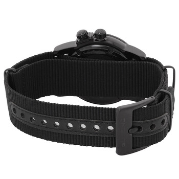 Black stainless steel case with a black nylon strap. Black stainless steel bezel. Black dial with yellow hands and Arabic numeral hour markers. Minute markers around the outer rim. Dial Type: Analog. Luminescent hands and markers. Date display at the 3 o'clock position. Ronda Caliber 515.24H quartz movement. Scratch resistant sapphire crystal. Screw down crown. Solid case back. Round case shape, case size: 42 mm, case thickness: 14 mm. Band width: 22 mm, band length: 8.8 inches. Buckle clasp. Water resistant at 100 meters / 330 feet. Functions: date, GMT, second time zone, hour, minute, second. Airman Contemporary Worldtimer Series. Sport watch style. Watch label: Swiss Movt. Glycine Airman Contemporary Worldtimer GMT Quartz Black Dial Men's Watch GL1029.