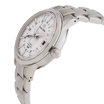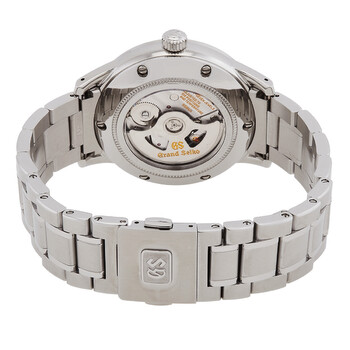 Silver-tone stainless steel case and bracelet. Fixed silver-tone stainless steel bezel. White dial with silver-tone hands and index hour markers. Dial Type: Analog. Date display at the 3 o'clock position. Grand Seiko Caliber 9S86 automatic movement with a 55-hour power reserve. Scratch resistant sapphire crystal. Pull / push crown. Transparent see through case back. Round case shape, case size: 39.5 mm, case thickness: 14.1 mm. Band width: 19 mm. Fold over clasp with a safety release. Water resistant at 30 meters / 100 feet. Functions: date, GMT, second time zone, hour, minute, second. Elegance Series. Watch label: Japan Movt. Grand Seiko Elegance Hi-Beat 36000 GMT Automatic White Dial Watch SBGJ271G.