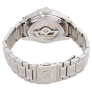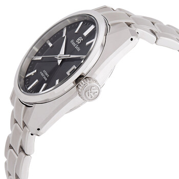 Silver-tone stainless steel case and bracelet. Fixed silver-tone stainless steel bezel. Black dial with silver-tone hands and index hour markers. Minute markers around the outer rim. Dial Type: Analog. Date display at the 3 o'clock position. Grand Seiko Calibre 9S85 automatic movement with a 55-hour power reserve. Scratch resistant sapphire crystal. Screw down crown. Round case shape, case size: 40 mm, case thickness: 13.3 mm. Band width: 19 mm. Fold over clasp with a safety release. Water resistant at 100 meters / 330 feet. Functions: date, hour, minute, second. Heritage Series. Dress watch style. Watch label: Japan Movt. Item Variations: SBGH301. Grand Seiko Heritage Automatic Black Dial Men's Watch SBGH301G.