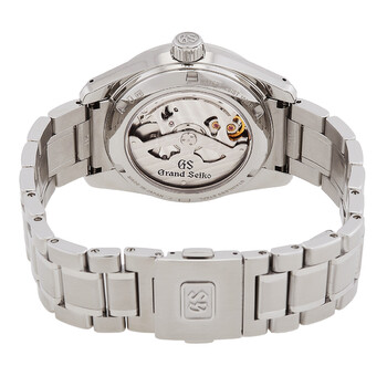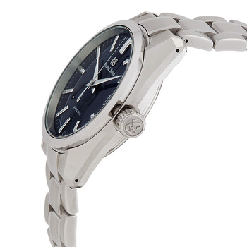 Silver-tone stainless steel case and bracelet. Fixed silver-tone stainless steel bezel. Blue dial with silver-tone hands and index hour markers. Minute scale around the inner rim. Dial Type: Analog. Luminescent hands and markers. Date display at the 3 o'clock position. Grand Seiko Caliber 9R65 automatic movement with a 72-hour power reserve. Scratch resistant sapphire crystal. Screw down crown. Transparent see through case back. Round case shape, case size: 40 mm, case thickness: 12.5 mm. Band width: 19 mm. Fold over clasp with a safety release. Water resistant at 100 meters / 330 feet. Functions: date, hour, minute, second,power reserve indicator. Heritage Series. Sport watch style. Watch label: Japan Made. Grand Seiko Heritage Automatic Blue Dial Men's Watch SBGA375G.